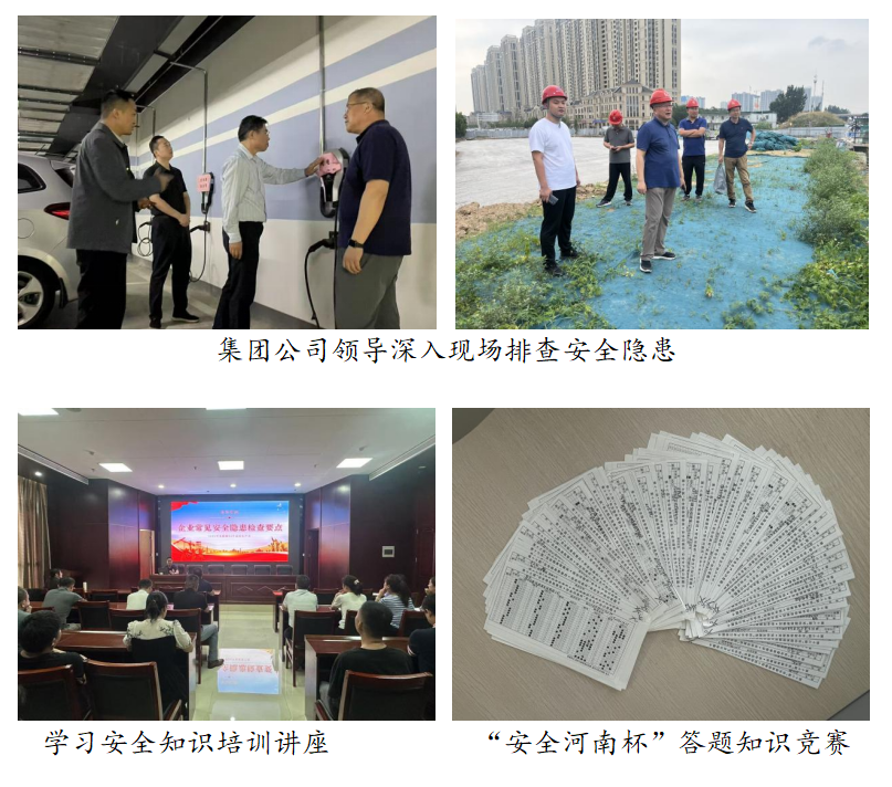 集團公司圍繞今年“人人講安全、個個會應(yīng)急——查找身邊安全隱患”的活動主題,開展了安全知識培訓(xùn)講座、現(xiàn)場隱患排查與治理、層層簽訂安全目標責任書、安全生產(chǎn)“對話談心”、“安全河南杯”知識競賽、安全宣傳咨詢?nèi)铡⒉贾谜拱搴蜅l幅宣傳安全知識等多項活動,通過推進“安全生產(chǎn)月”活動的進行,讓全體干部職工強化責任擔當、堅持底線思維、建立紅線意識。